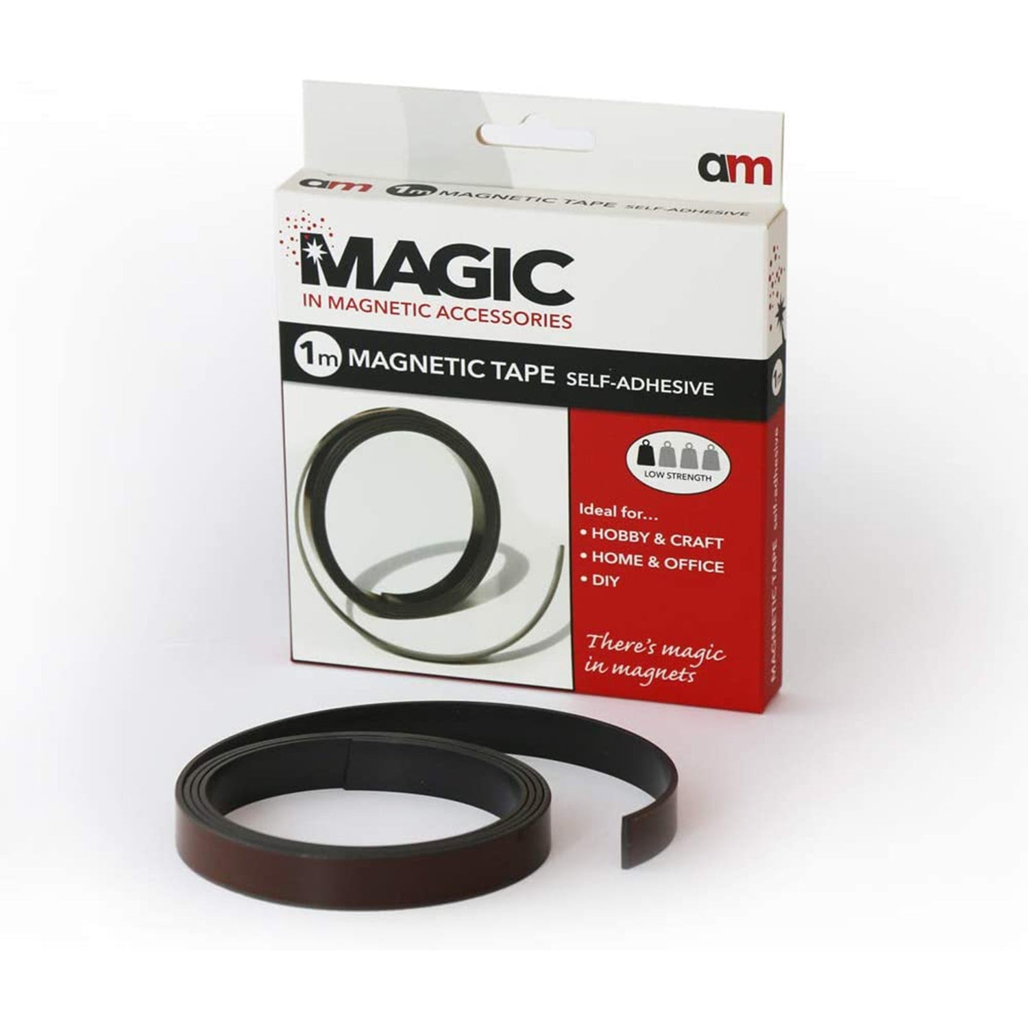 This Magnetic Tape strip is ideal for making lightweight items magnetic, for use with arts & crafts, posters, signs, labelling, and is easily cut with scissors or craft knives. The magnetic face is attracted to receptive ferrous metal surfaces, such as steel, and the reverse face carries a high-strength acrylic adhesive.