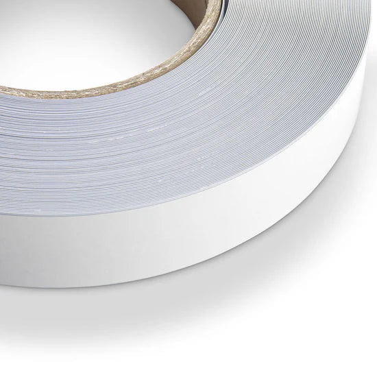 This variant of our Steel Tape has standard adhesive applied and a width of 12.7mm, aligning perfectly with our Magnetic Tape of the same width. Standard adhesive is a modified solvent-based acrylic adhesive suitable for applying to flat paper or board substrates.